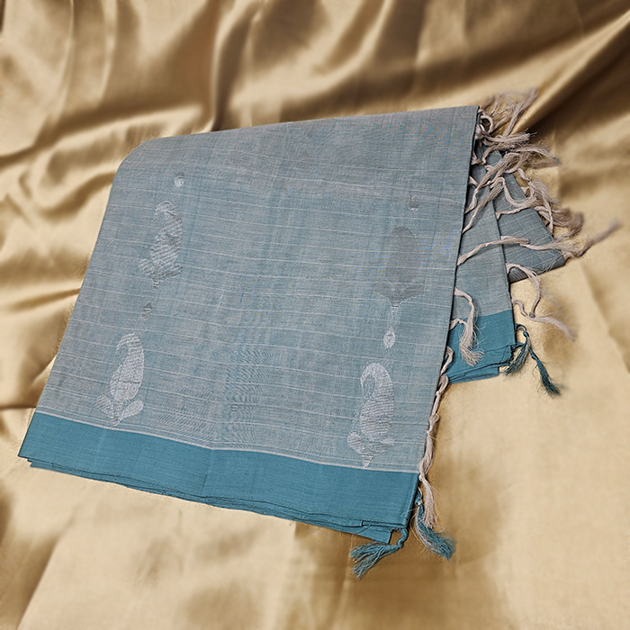 Maheshwari Silk Cotton Handloom Woven Paisley Saree in Teal color