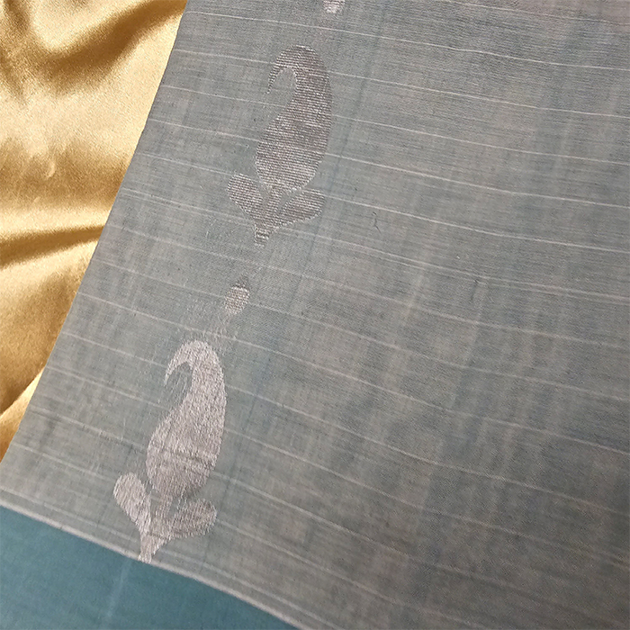 Maheshwari Pure Cotton Saree in Grey with Golden Zari